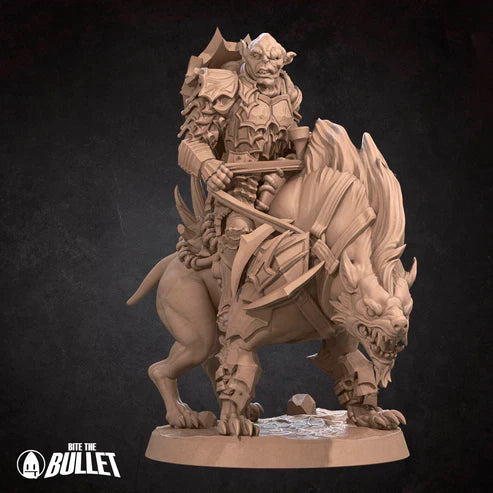 Orc Warg Rider Lieutenant — Unpainted, high-detail resin. Licensed Bite the Bullet print by Wizard’s Supply. Ready for RPGs and skirmish games.